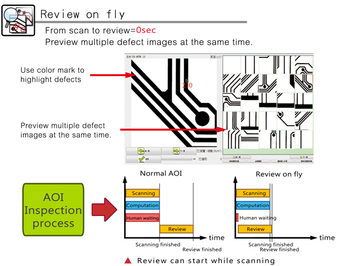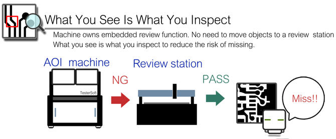 The embedded review system, you do not need a standalone review system, every image you see is the same image in inspection. This can reduce the risk of missing review.