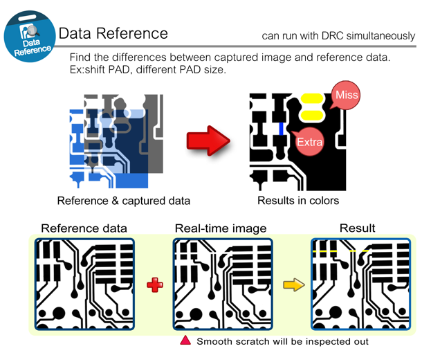 Data reference:To compare captured image with reference data. We emphasized that lost PAD on the photomask, image shifted and change of pattern size.