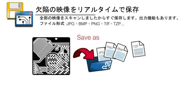 スキャン済みの全ての画面が即時保存されます。画像ファイルを出力する機能もあり、各ファイルタイプで画像を出力することができます。(JPG、BMP、PNG、TIFF、TZP)