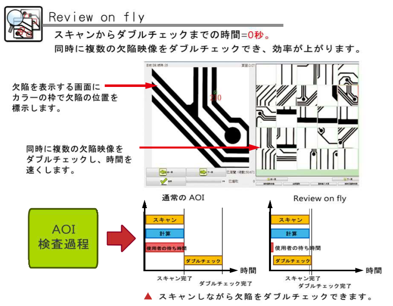 1. スキャンの待ち時間が不要で、すぐに欠陥の再検査を行うことができます。