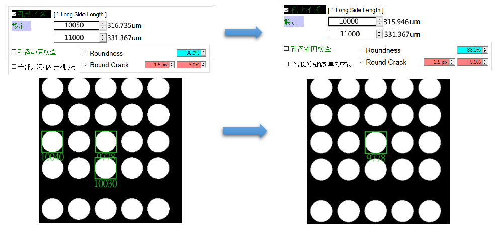 パラメータ調整後、新しいパラメータはリアルタイムで画像に反応し、欠陥も表示されます。